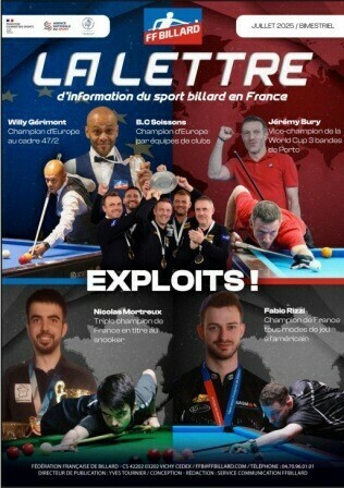 La lettre de la Fédération Française de Billard de juillet 2025 est disponible via ce lien.
